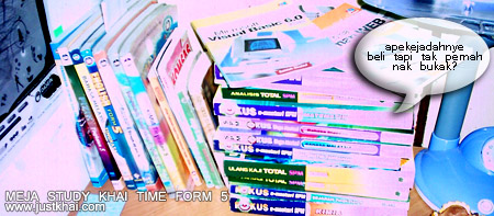 buku buku tu semua dah pun aku kekahkan kat jiran aku.. hahaha..