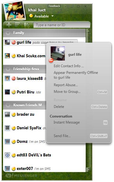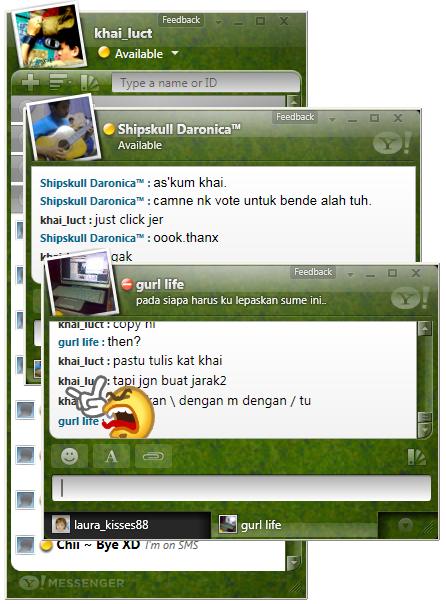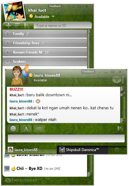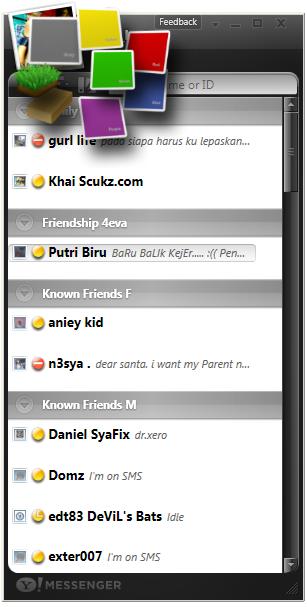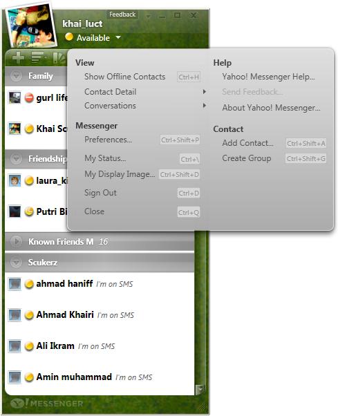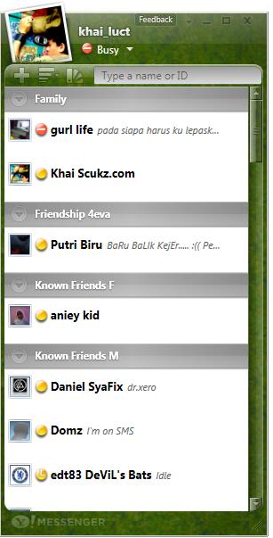 Tapi sebelum tu, meh Khai tunjukkan sikit screenshot Yahoo!Messenger Vista ni yang pasti membuatkan lubang hidung korang kembang kempis. Untuk gambar sebenar, just click satu persatu thumbnails di bawah and penerangai kat bawah tu nanti berdasarkan number thumbnails apabila korang hover guna mouse.